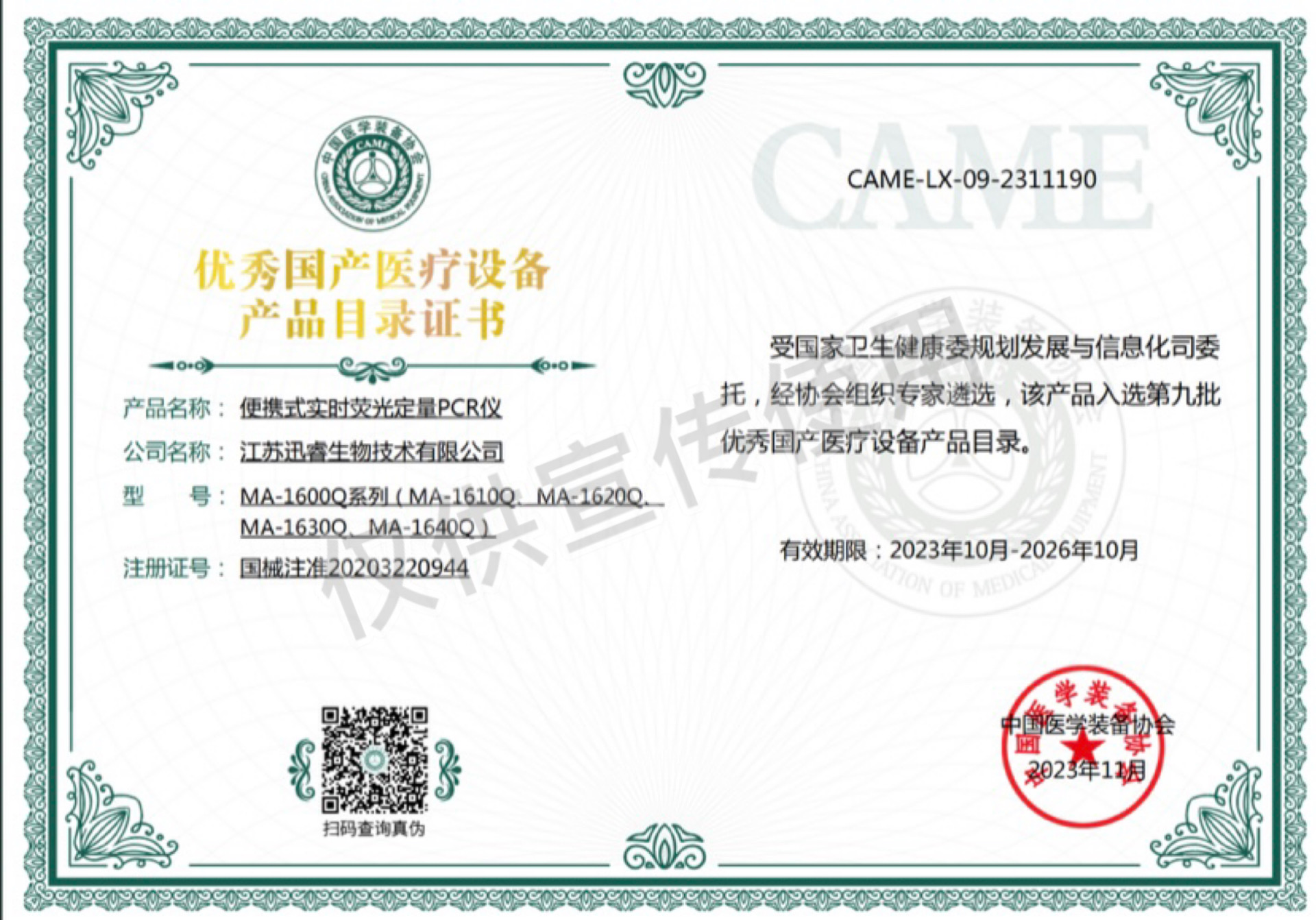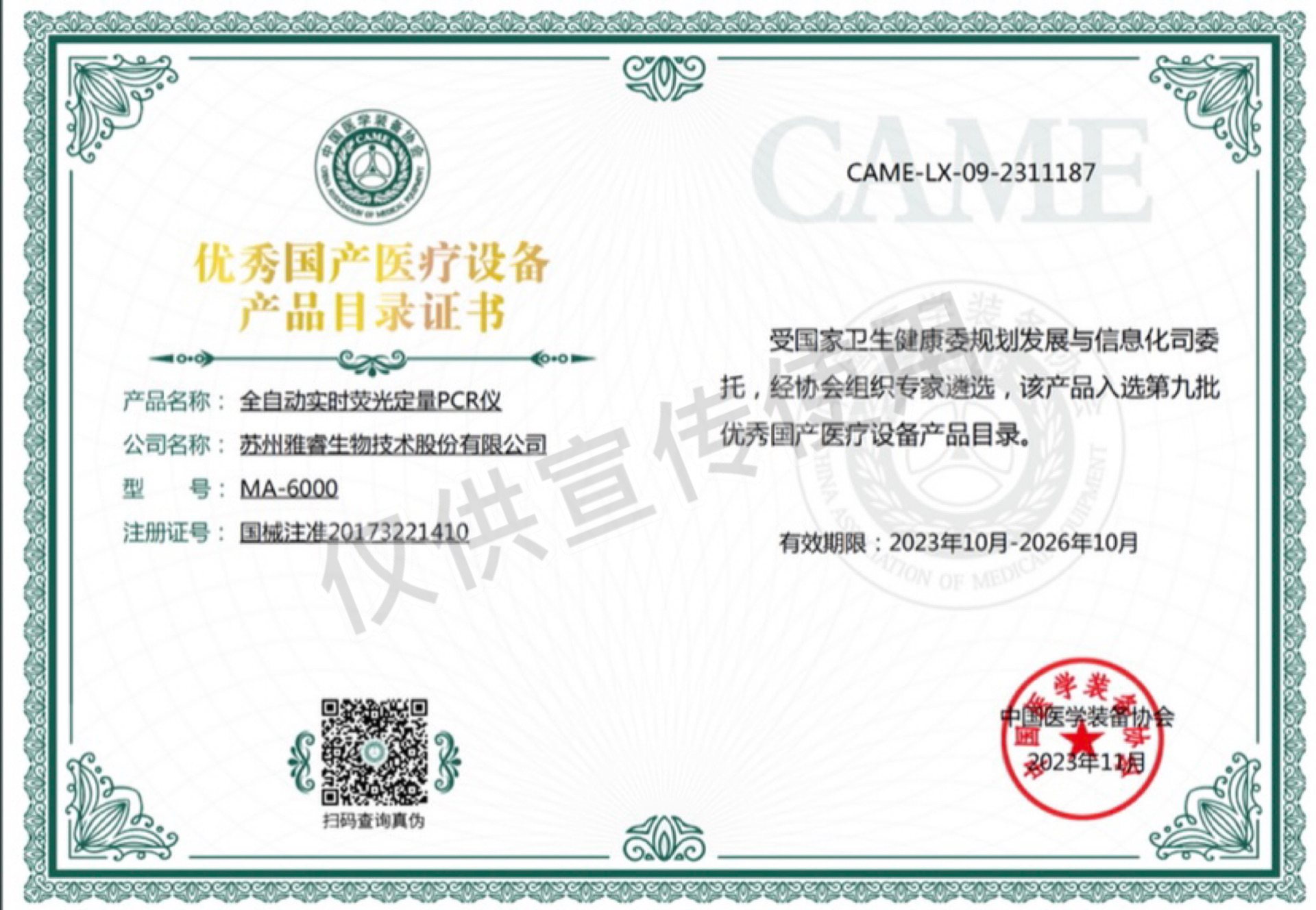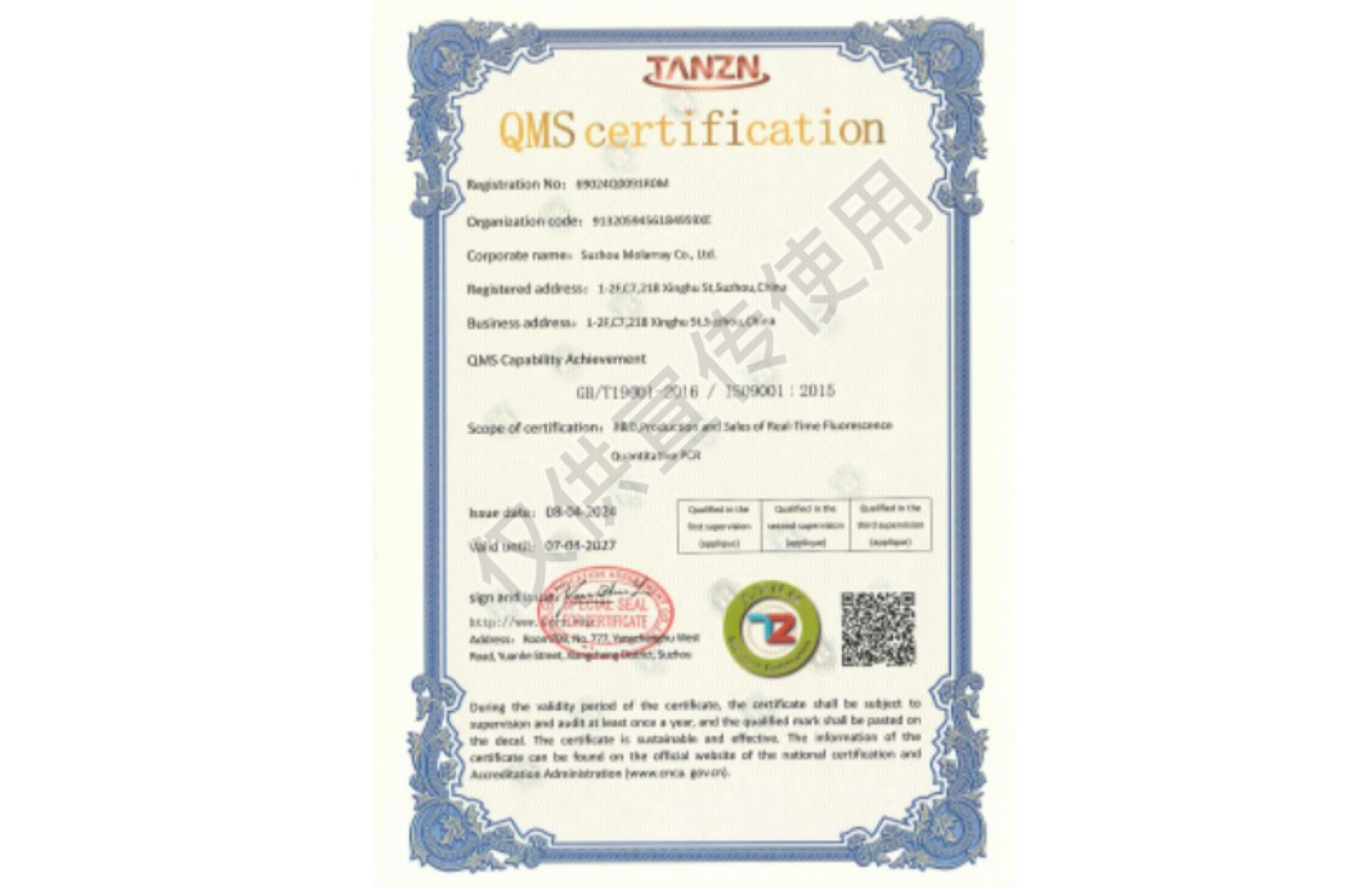 Qualification certificate