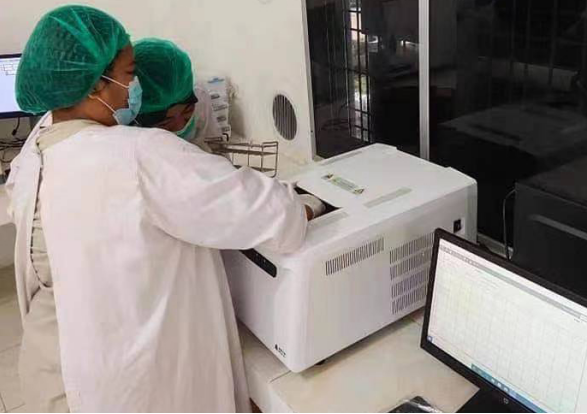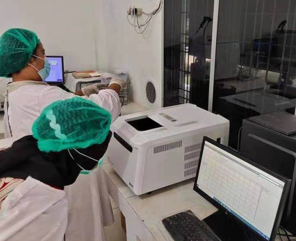 (援疆医疗队 以MA-6000为教学机型向检验人员教授使用方法)