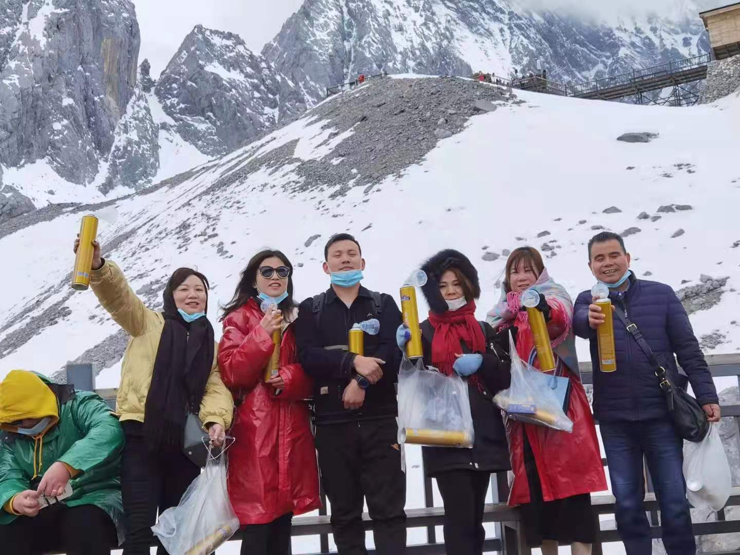 4月16日,是一个不平凡的一天。因为这一天yl7703永利集团的小伙伴们要早早的起床去玉龙雪山挑战雪山之巅。在早餐时间就看得出来小伙伴们也做了充分的攻略,早餐的盘子里装的都是鸡蛋、牛奶等高蛋白的食物,手上也拿了从家里带来的厚外套。到车上,yl7703永利集团的小伙伴们对于玉龙雪山展开了激烈的讨论,终于到达山脚下的时候,空气渐渐变冷,带的厚衣服都抵挡不住寒风,大家都不免感到紧张,去租了衣服。公司非常体贴的租了羽绒服,氧气瓶,以及抗高反药物。做好充足准备,yl7703永利集团小伙伴们都励志登上雪山之巅。