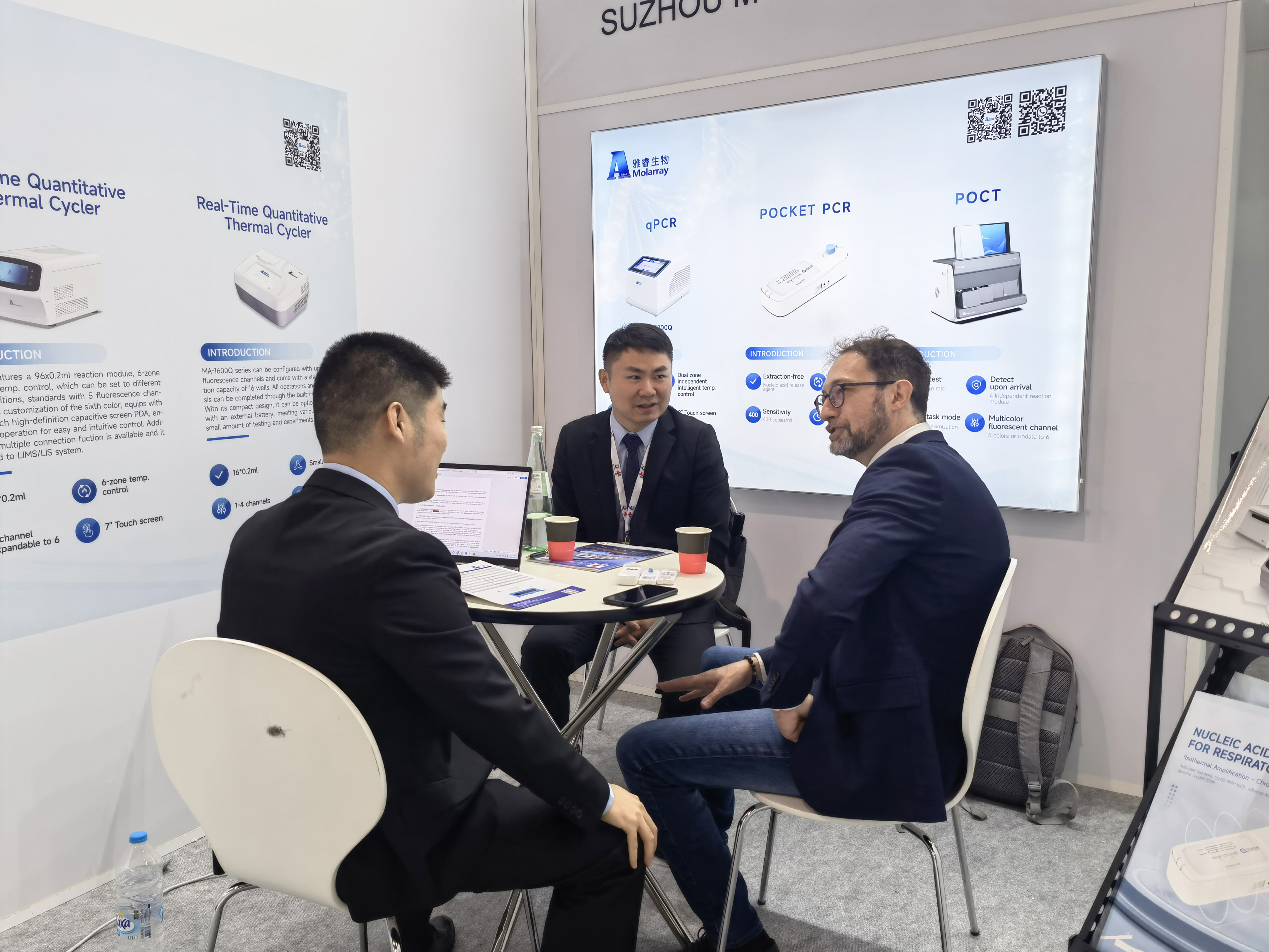 MA-3200Q实时荧光定量PCR仪,兼容八联排管和单管,标配4色荧光检测通道,满足大部分检测需求,内置计算机,8寸高清电容屏PDA,触控操作,一机多联,支持医院LIMS/LIS系统,该产品在本次MEDICA展会现场同样受到热切关注。