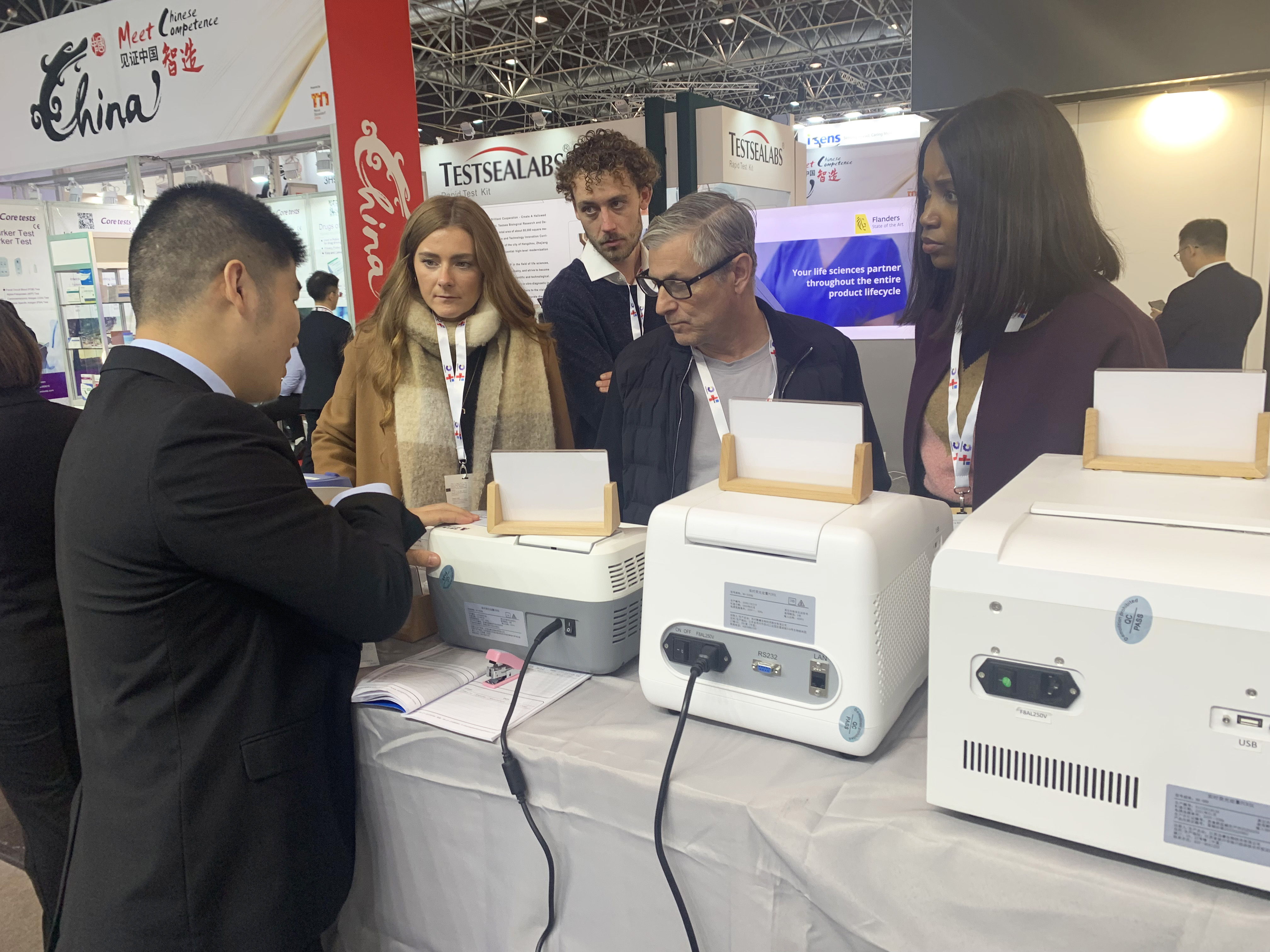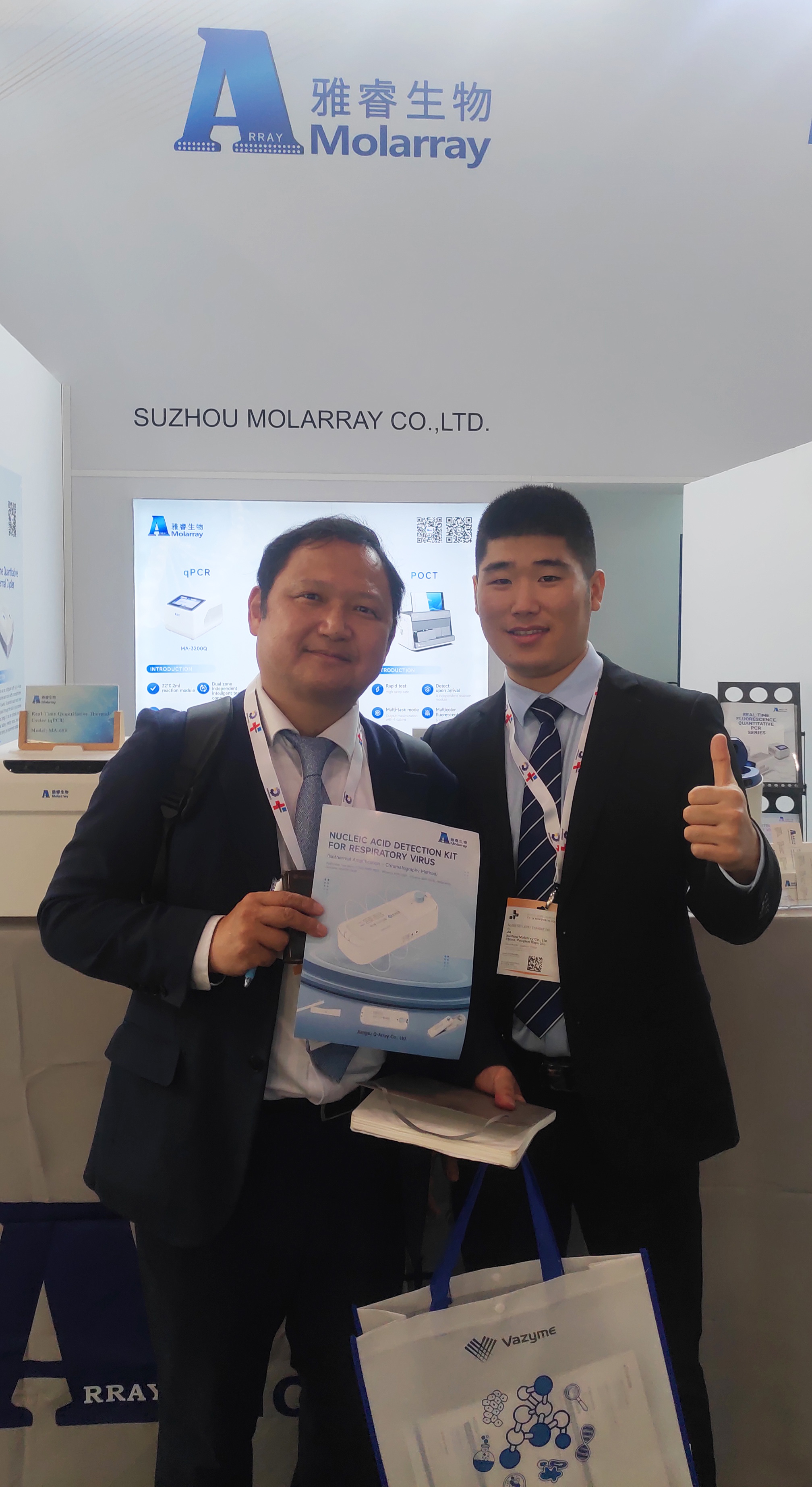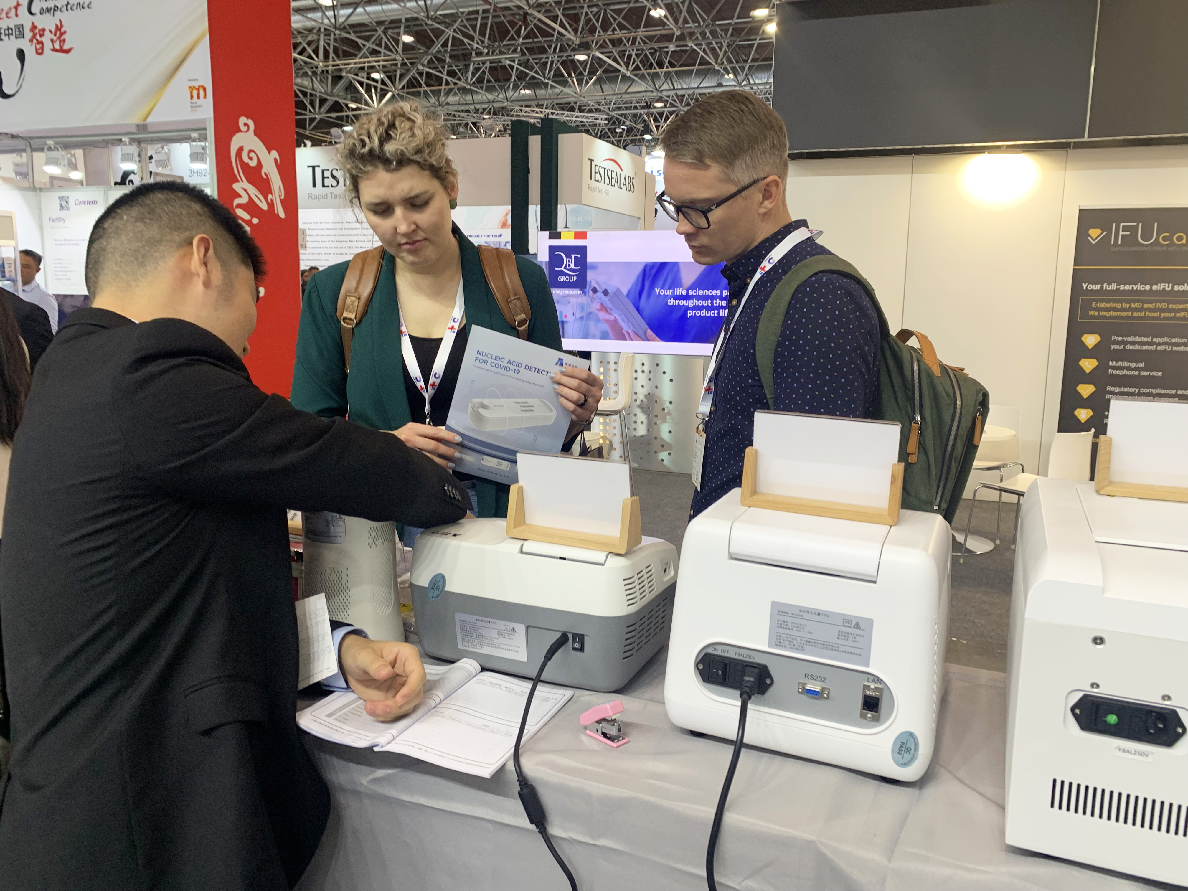 Pocket PCR整合微流控技术、恒温扩增技术、核酸层析技术,可高效、灵敏地检测新型冠状病毒RNA特异片段。操作友好,可重复使用,半小时内可得到结果,特别适合快速检测场合。吸引了世界各地的经销商与终端驻足参观,络绎不绝的参与操作,并对此感到惊喜并给予好评!