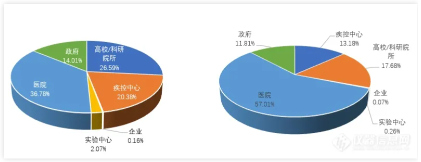 分省份来看,2023年荧光定量PCR仪在各个省份的采购数量占比如上图所示,排名前五的省份分别是广东、新疆、北京、山西、河北,合计占到全国采购量53.43%的半壁江山。其中,广东地区采购的荧光定量PCR仪,40%的采购单位是医院;新疆地区采购的荧光定量PCR仪,96%都被疾控中心收入囊中;北京地区的荧光定量PCR仪,44%被用于医院;山西地区采购的荧光定量PCR仪,50%应用于科研院所;河北地区采购的荧光定量PCR仪中,80%被用于医院。